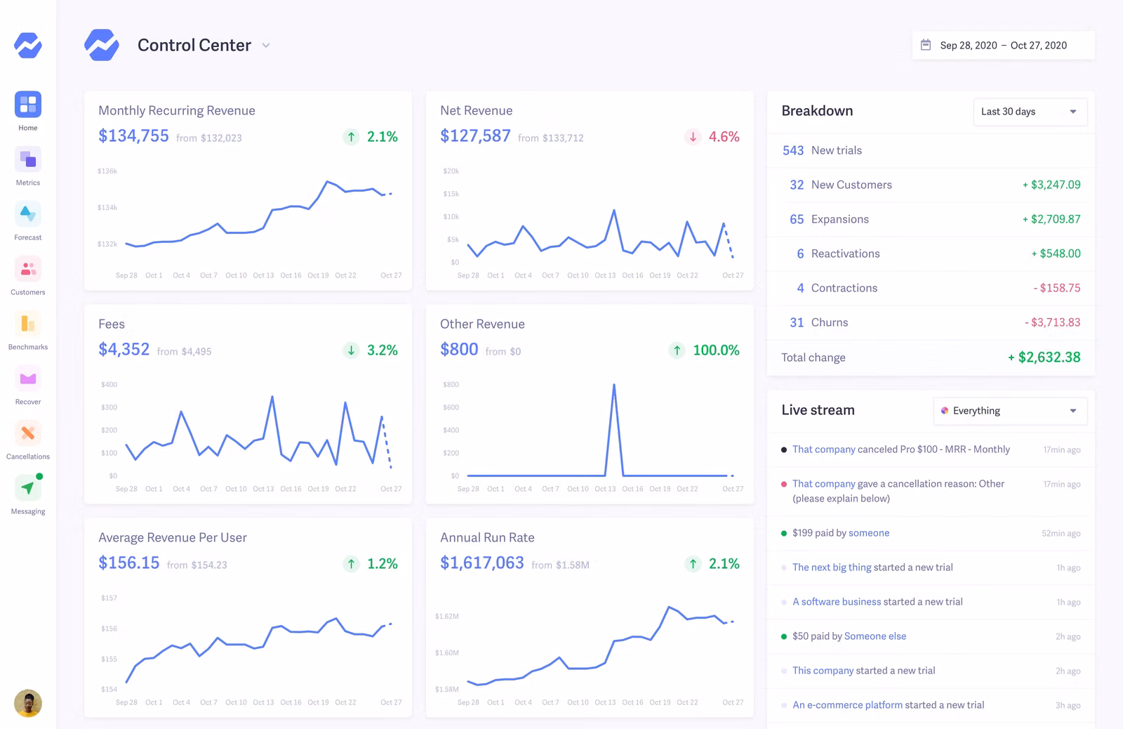 - Quick access to recurring revenue metrics