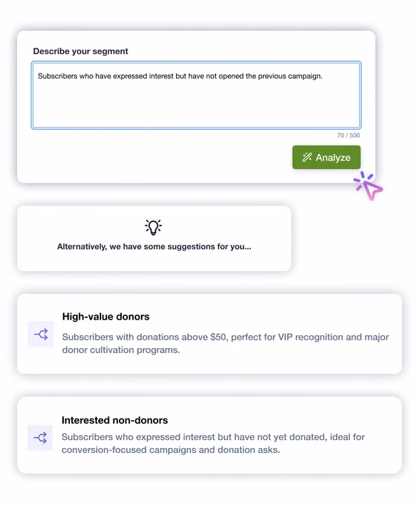 Email campaign builder focused on templates and segmentation.