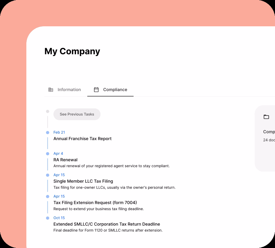 Business formation, compliance, and bookkeeping platform for founders.
