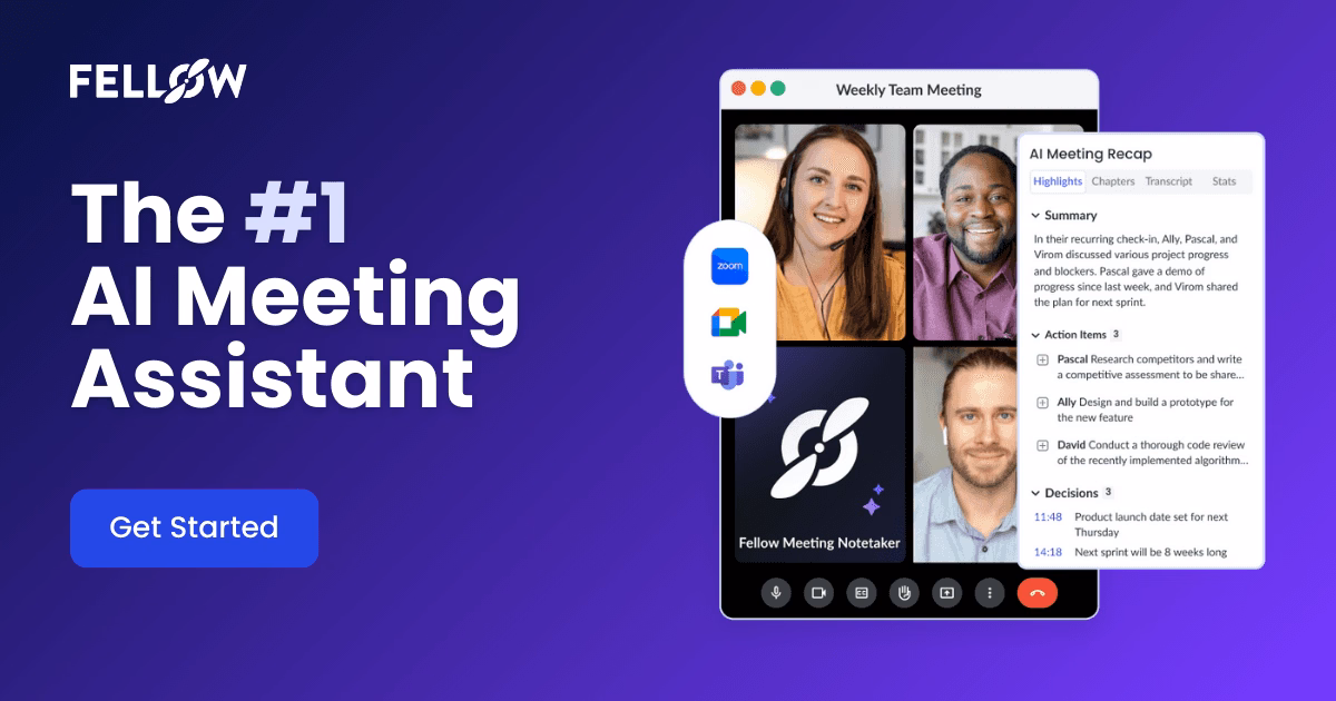 Fellow is a meeting management platform that helps teams run agendas, capture decisions, and keep meetings connected to follow-up work. It is useful for managers and cross-functional teams that want more consistency and accountability after meetings.