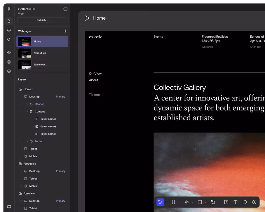 Collaborative design platform for interface design, prototyping, whiteboarding, and developer handoff.
