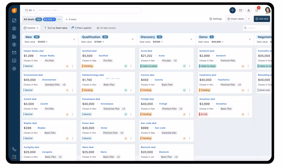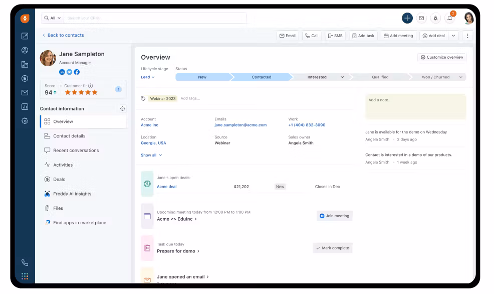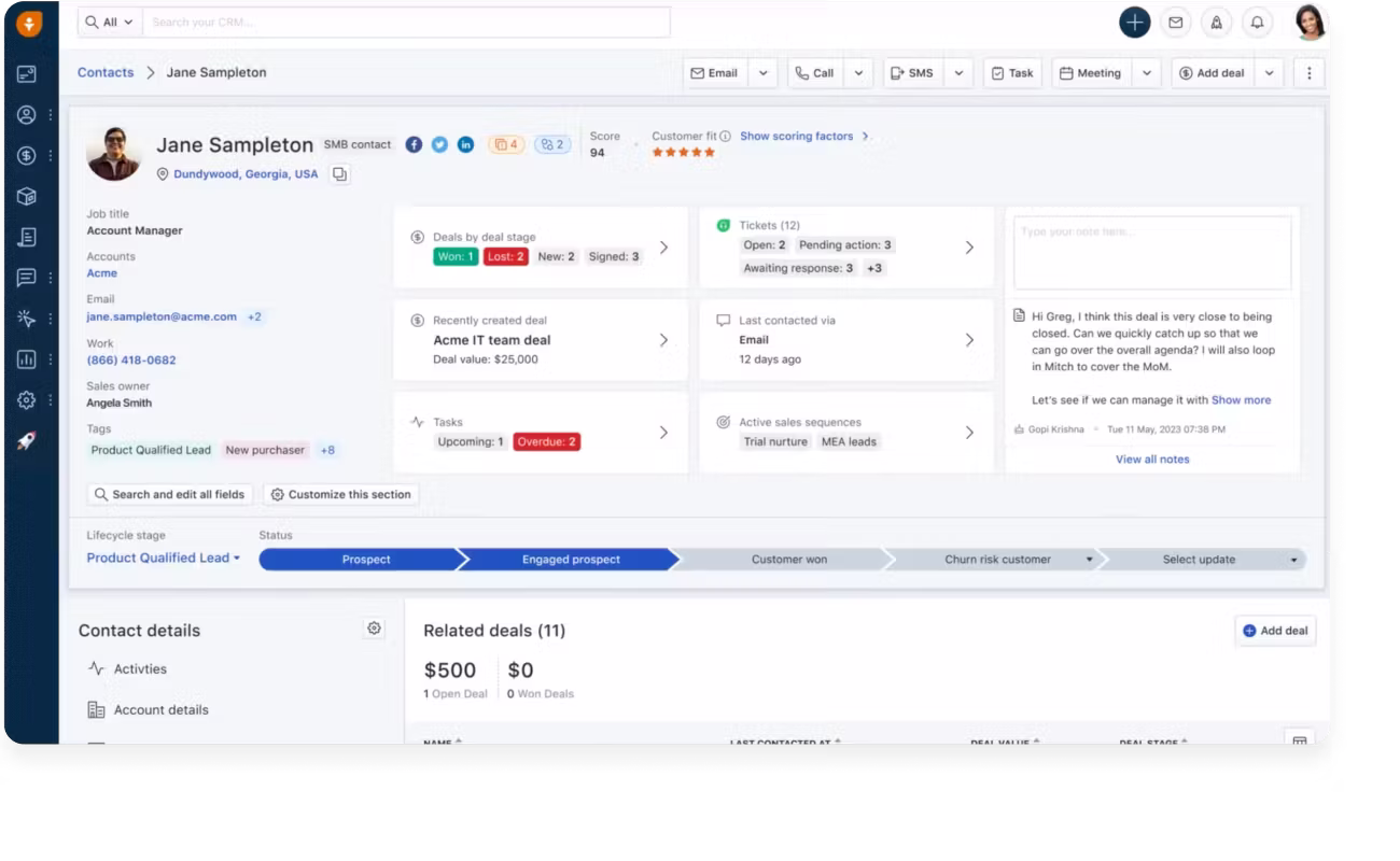 Freshsales combines CRM records with built-in calling, email, lead scoring, and automation. It is a practical fit for sales teams that want an integrated workflow without stitching together many separate tools.