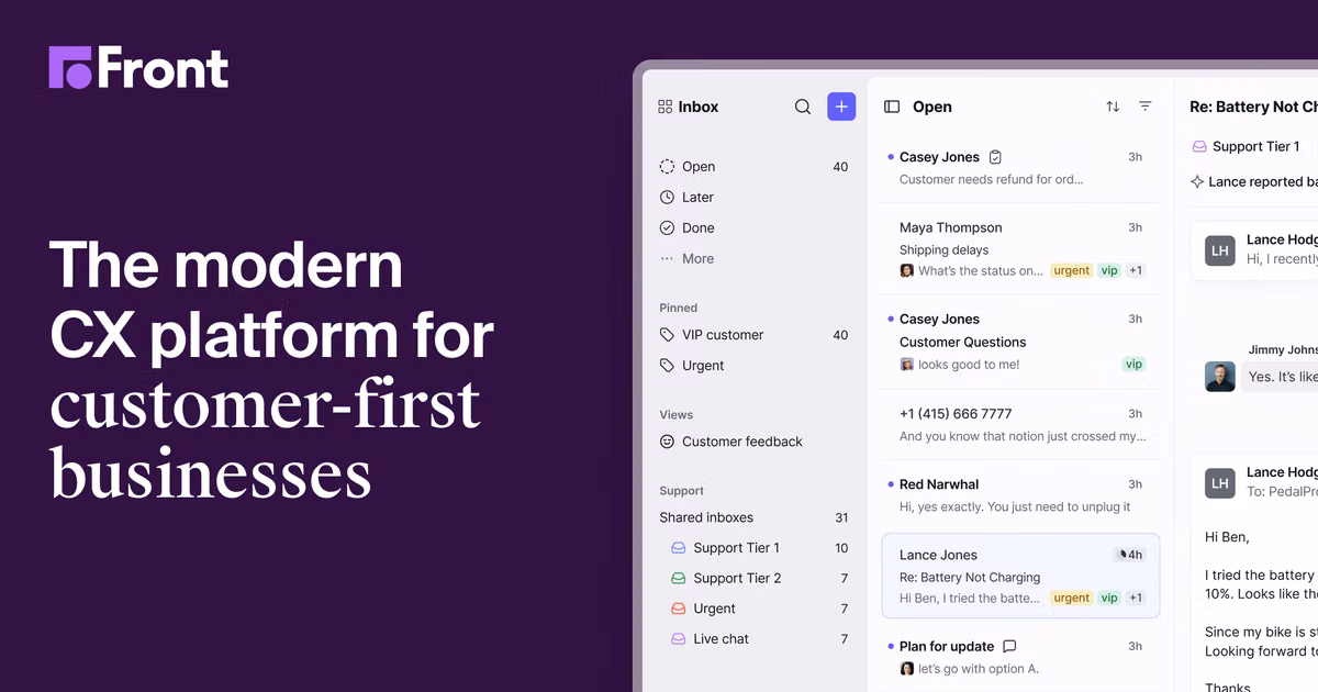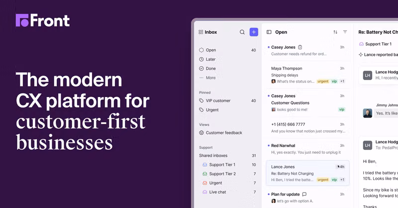 Front turns customer communication into a shared workspace for email, chat, and support operations. It is useful for teams that need internal collaboration around customer conversations without moving away from email-like workflows.