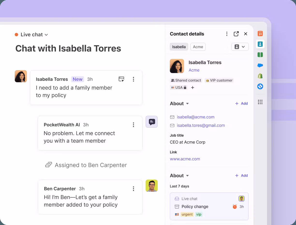Collaborative customer communication platform for email, chat, and support inboxes.