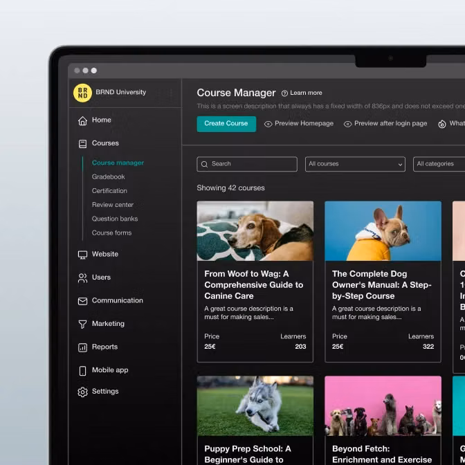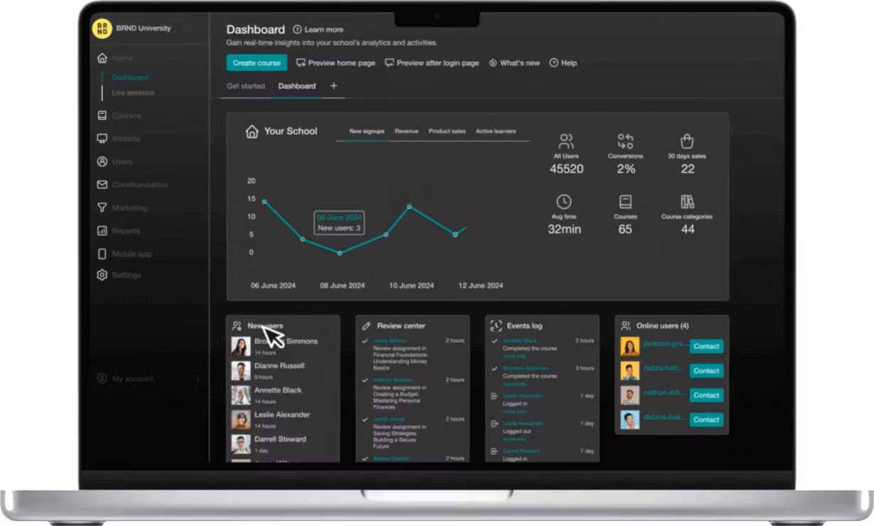 Online course platform with interactive learning and white-label schools.