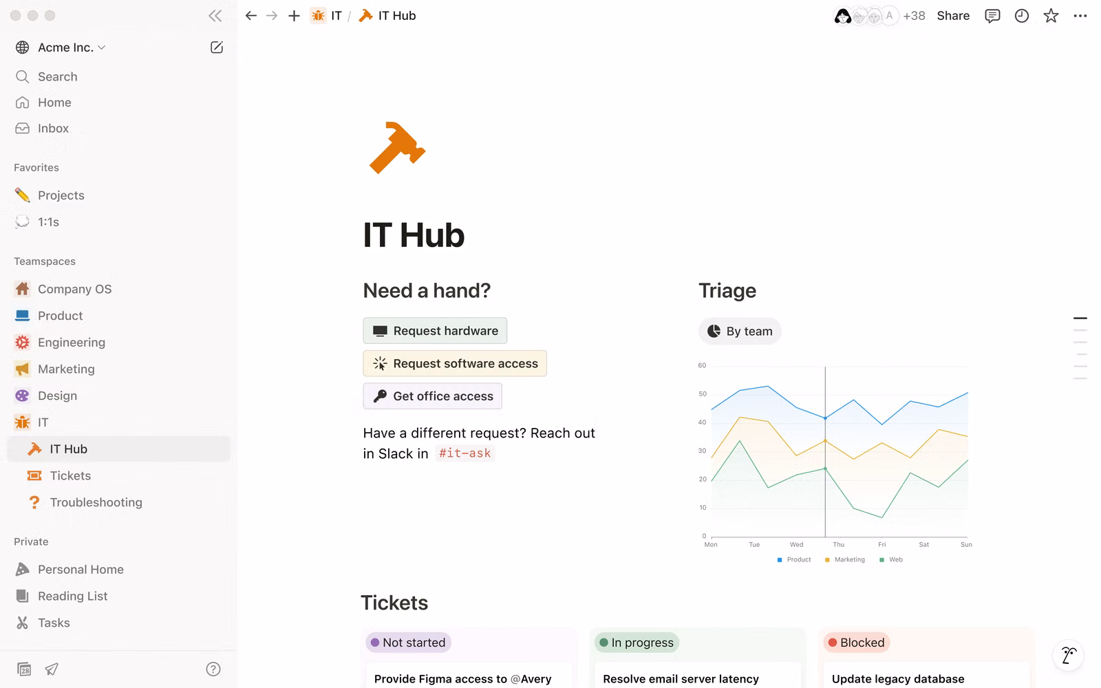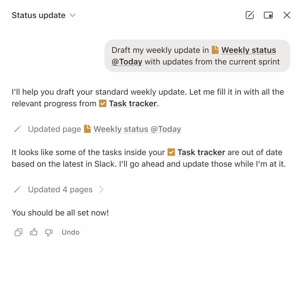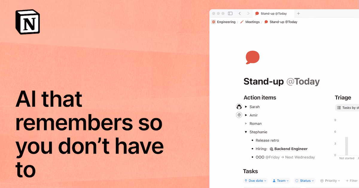 Notion combines documents, task tracking, knowledge management, databases, calendar, and AI assistance into a single configurable workspace. It is especially strong for teams that want one operating system for notes, project planning, lightweight CRM, specs, and internal search.