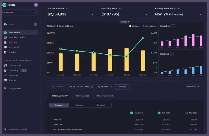 Puzzle is a modern accounting platform for startups that want automated bookkeeping and cleaner finance workflows. It is a good fit for founders who want more automation in the accounting stack.