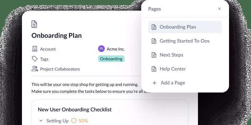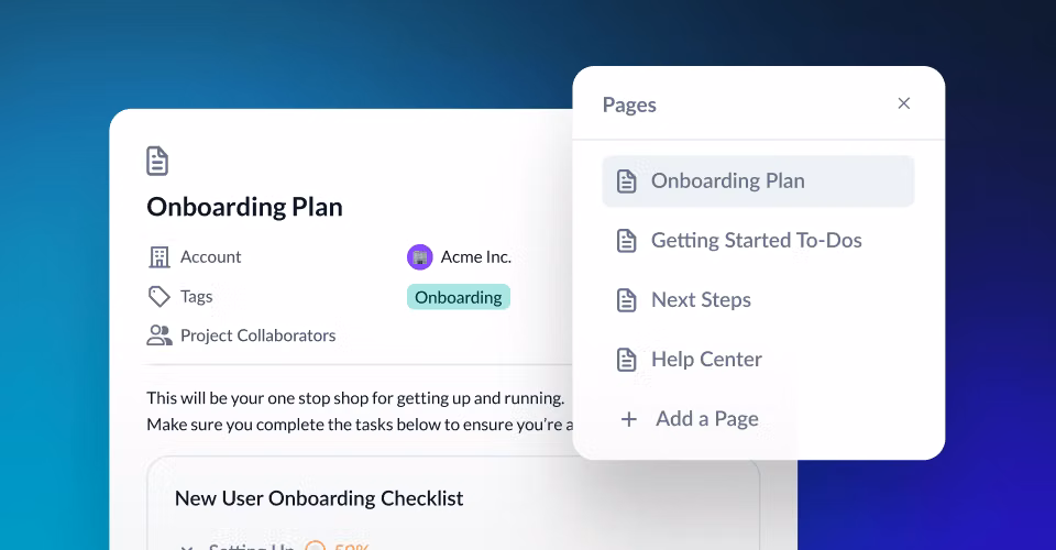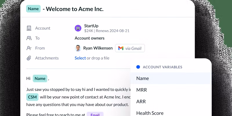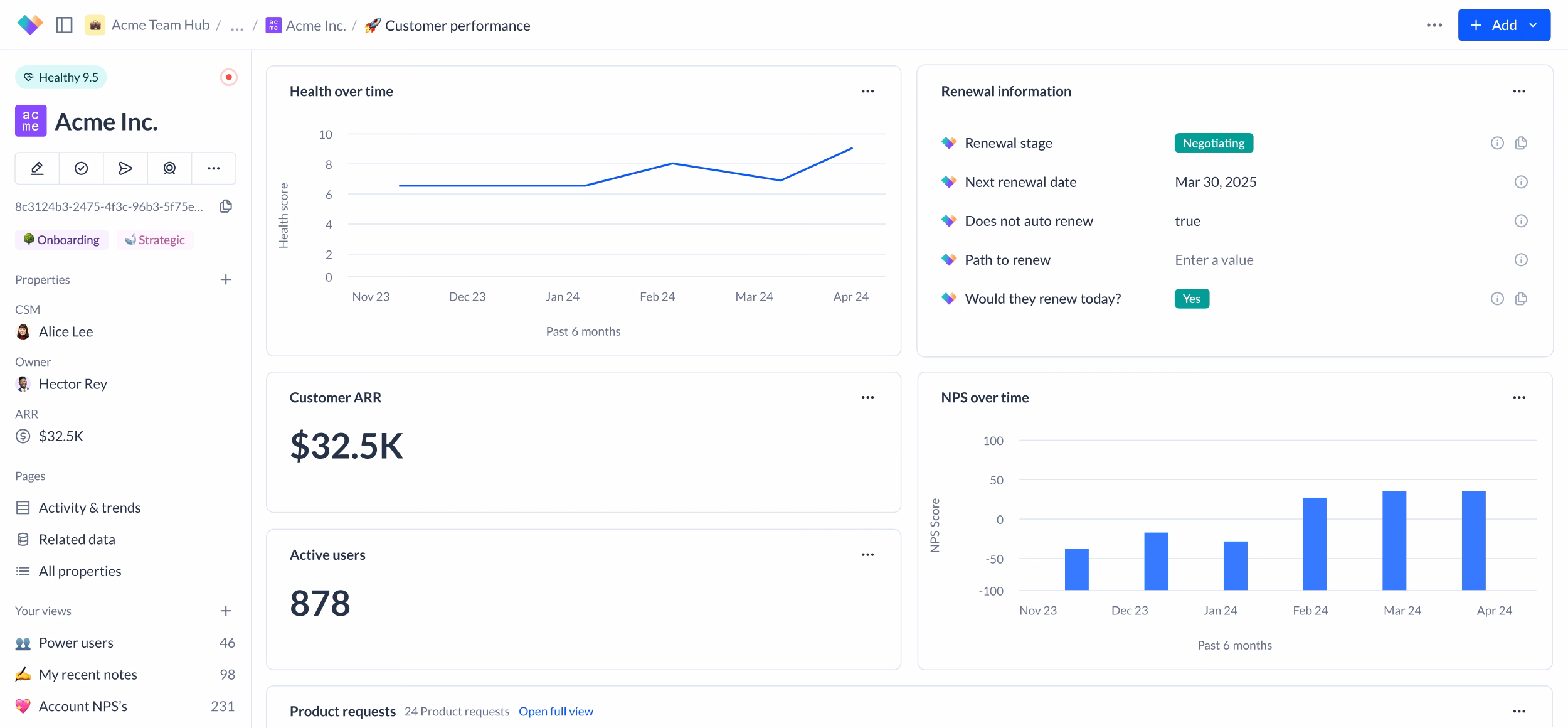 Customer success workspace for health tracking and account management.