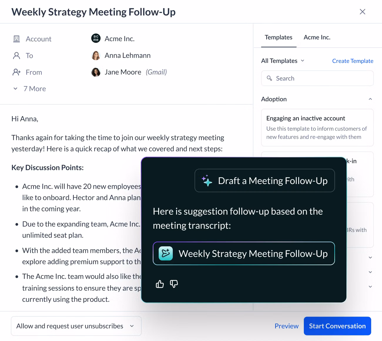 Customer success workspace for health tracking and account management
