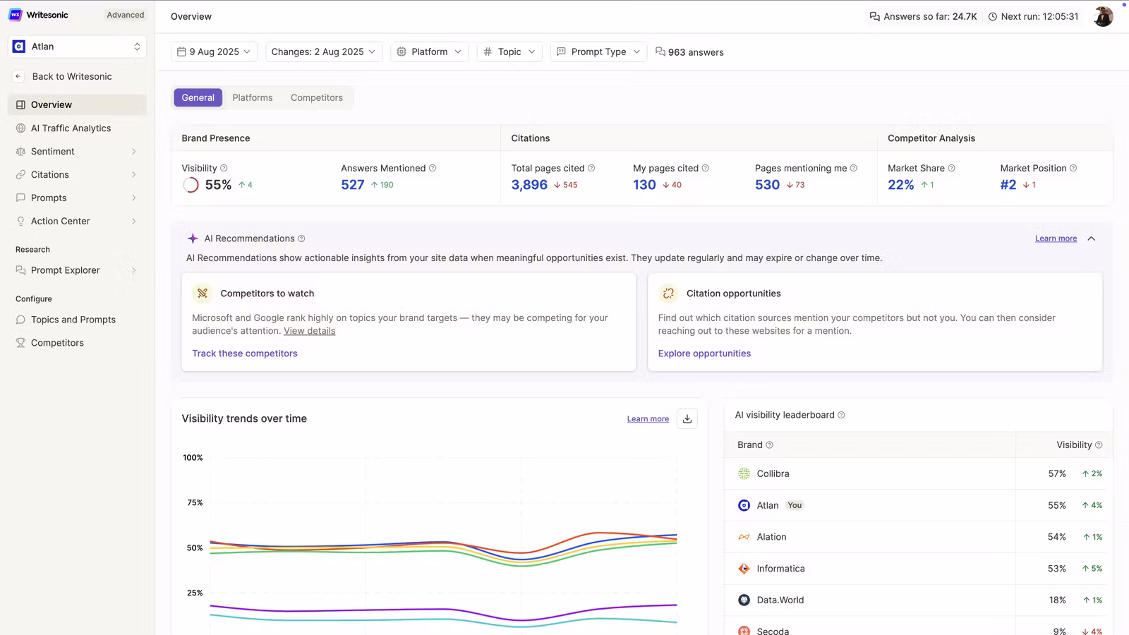Writesonic offers prompt-based writing, SEO content tooling, and assistant-style workflows aimed at content and growth teams. It is a practical option for organizations that want flexible AI writing without building custom workflows first.